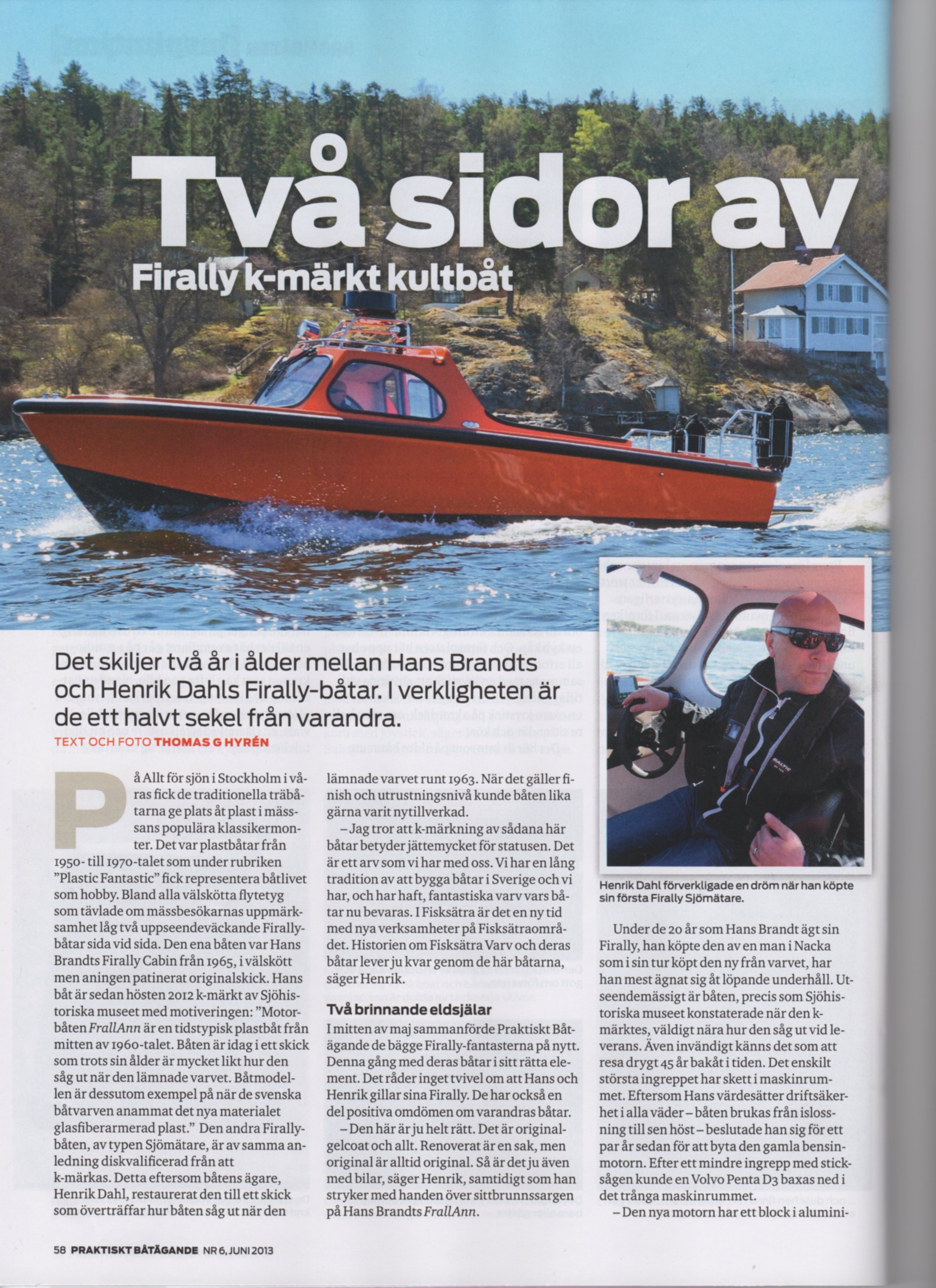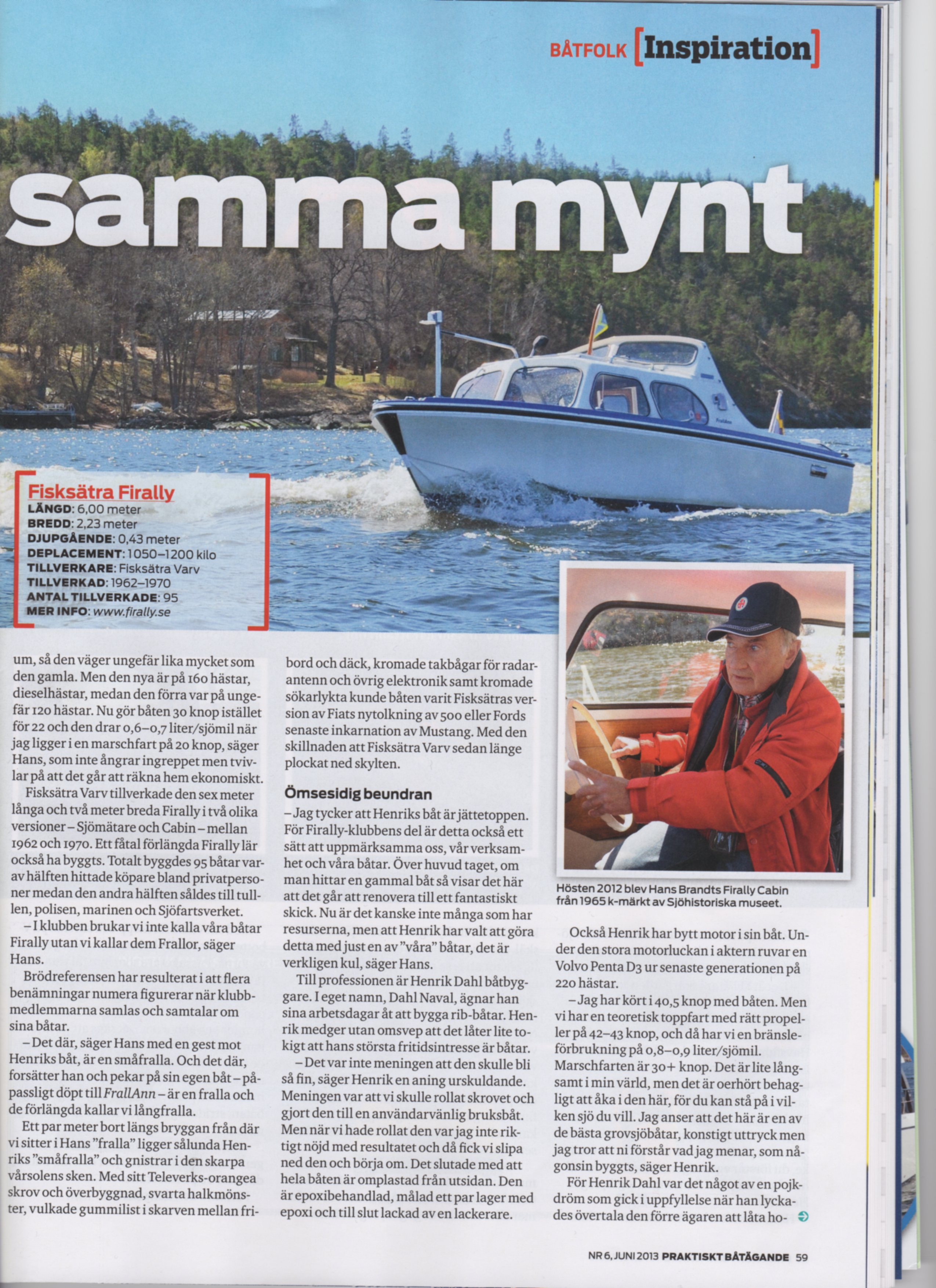 På våren 2007 funderade undertecknad och ett par andra Firallyägare på att bilda en Firallyklubb för erfarenhetsutbyte. ”Världens första och största Firallymöte ägde rum den 2 juni 2007 på ”Kymendö” dvs ”Hemsö” öster om Dalarö. Se bilder: